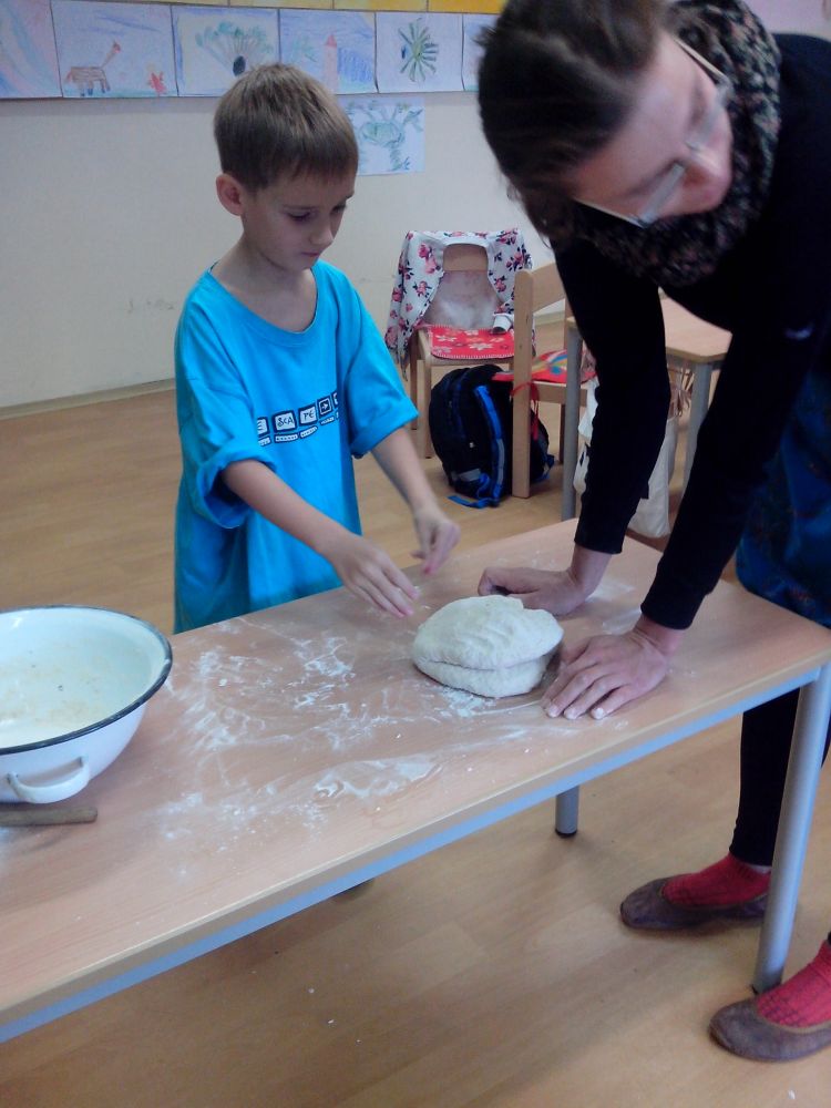 Hlavní album » 2016-2017 » 1. třída - tř.učitelka Mgr. K. Szaffnerová » 2016-09-27 Pečeme chleba ◄ 1 2
