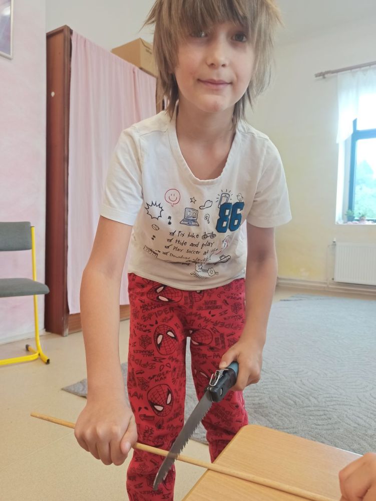 Hlavní album » 2023-2024 » 1.třída - tř.učitelka P. Zídková Benková » 2023-09-13 Výroba jehlic na pletení