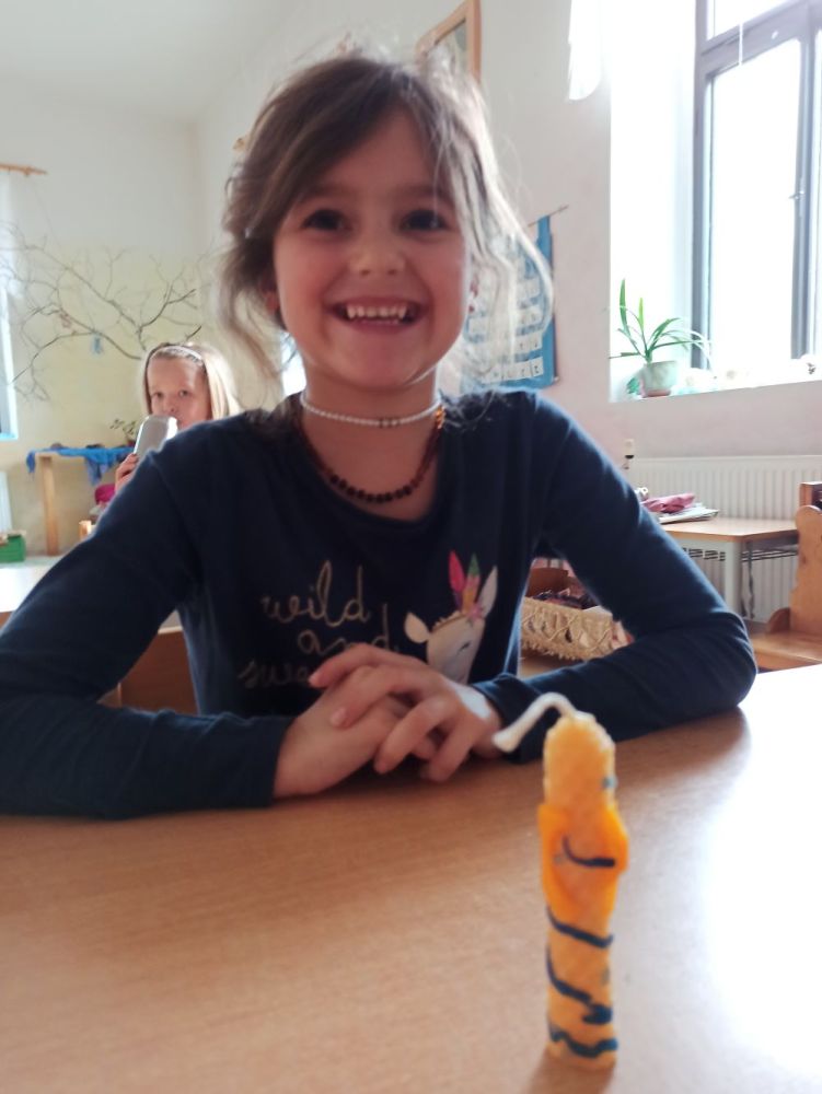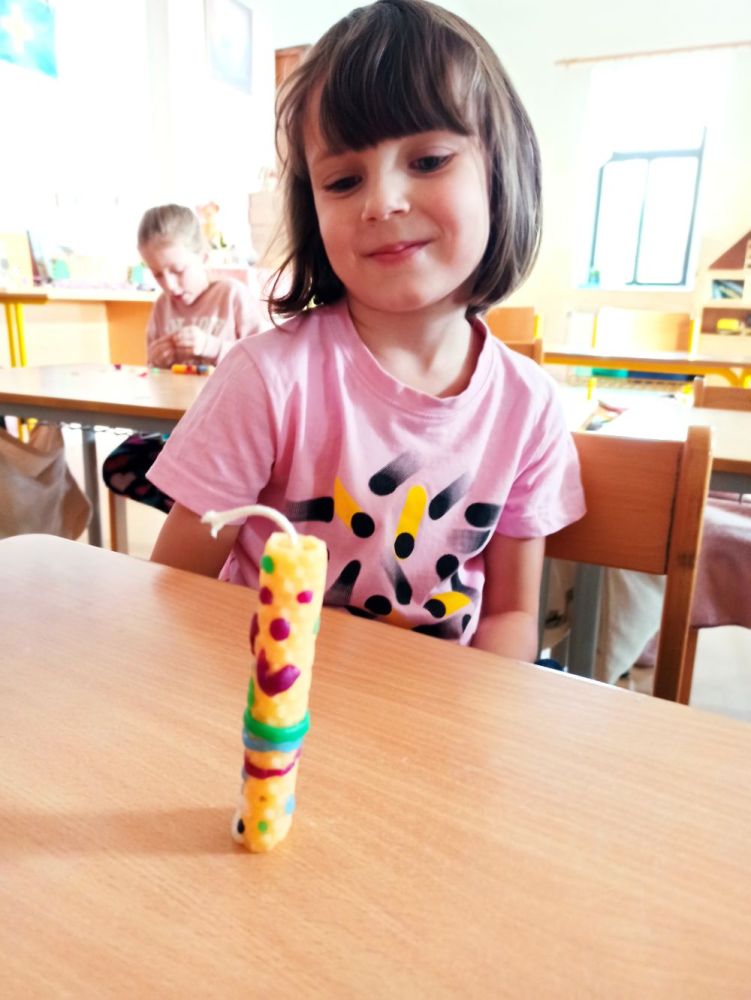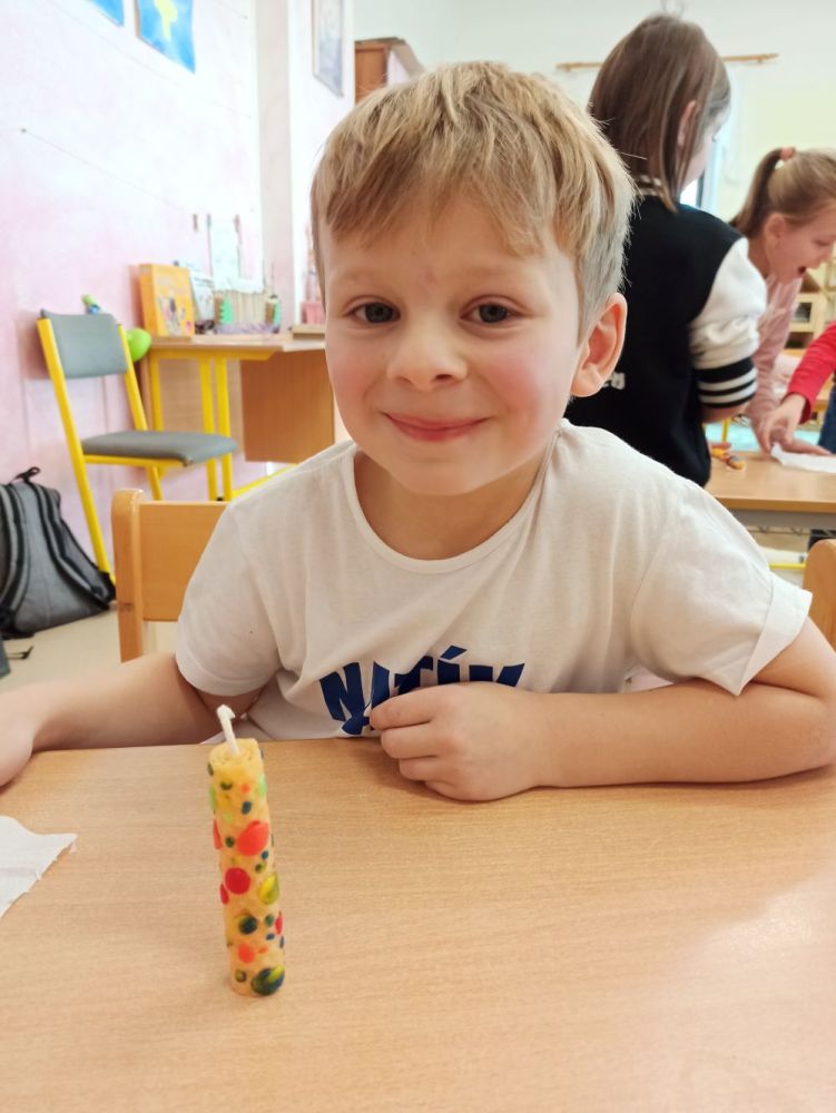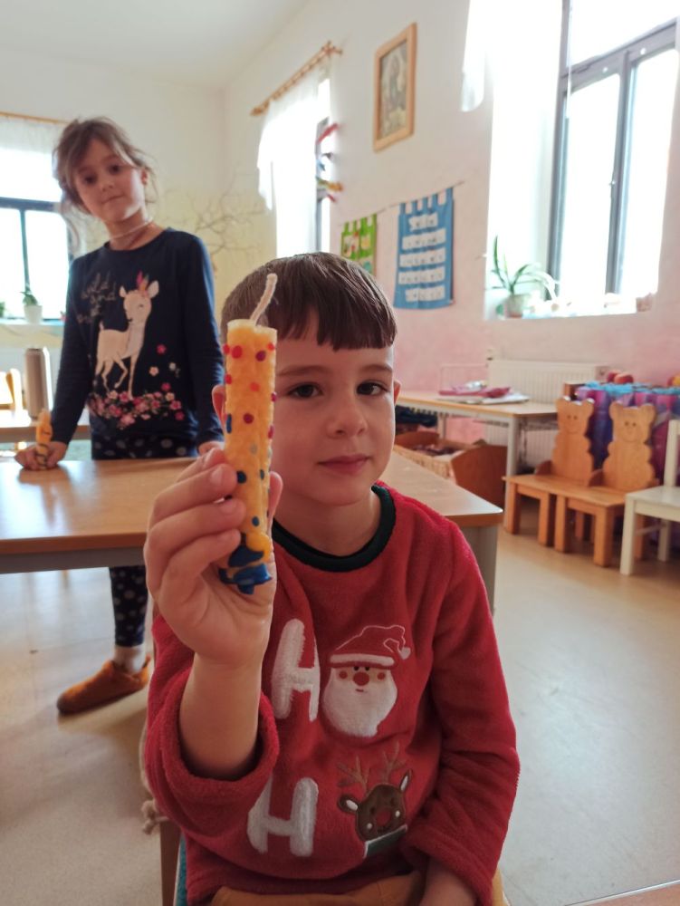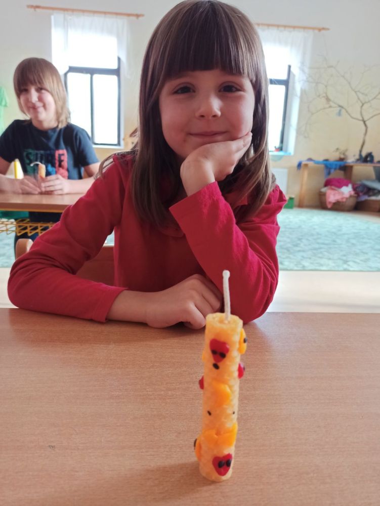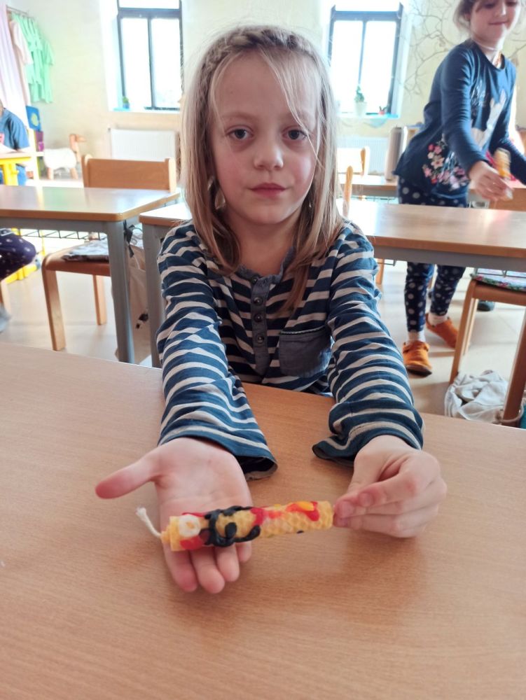 Hlavní album » 2023-2024 » 1.třída - tř.učitelka P. Zídková Benková » 2023-12-20 Výroba a zdobení svíček z pláství