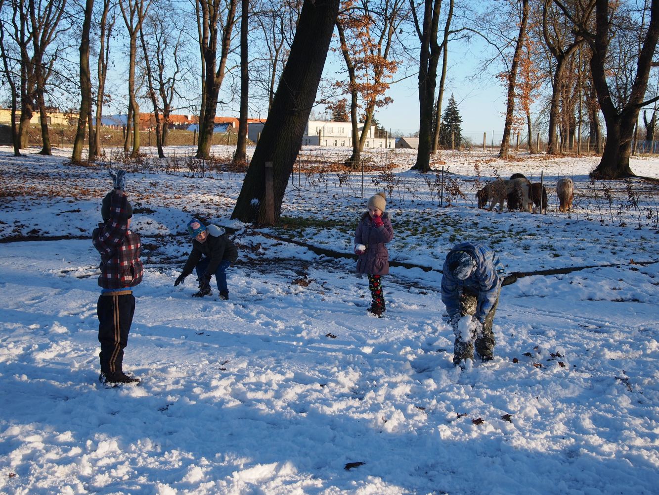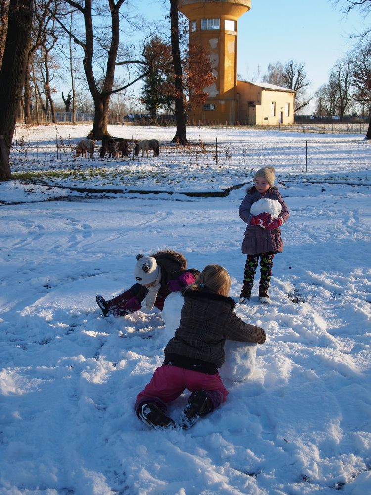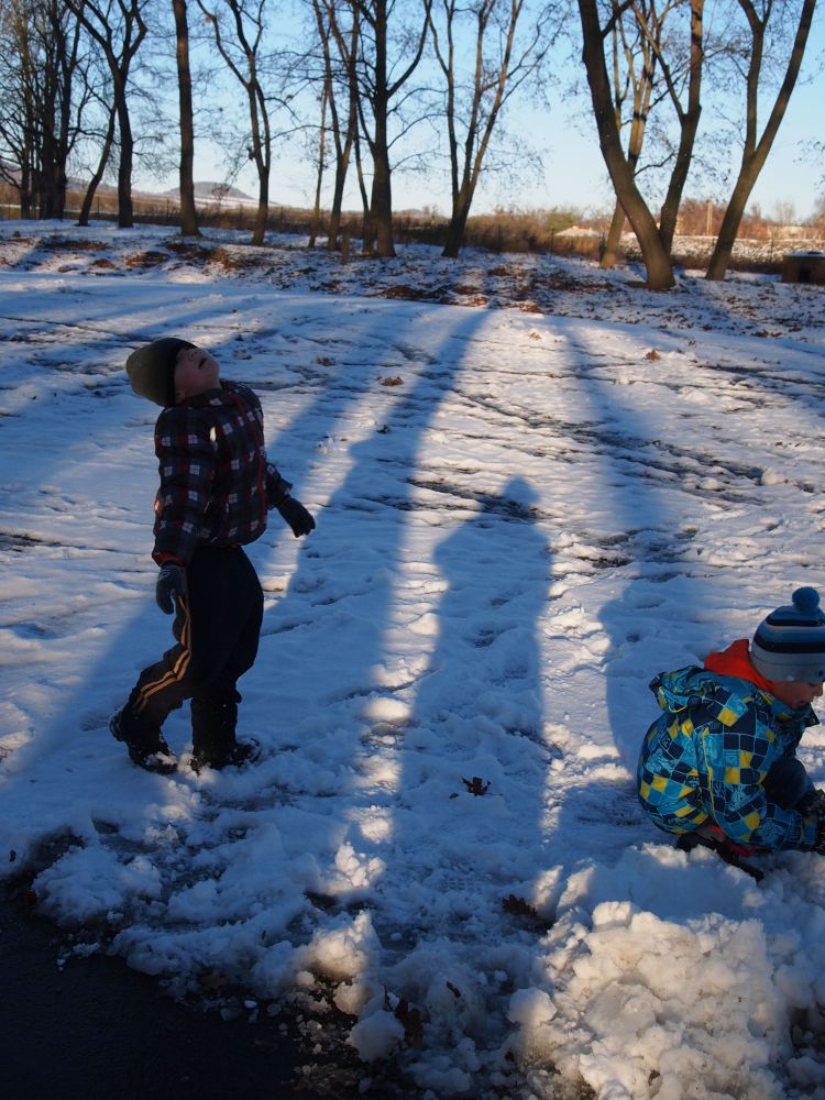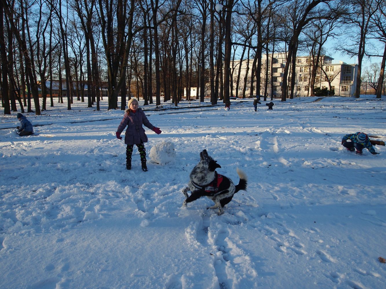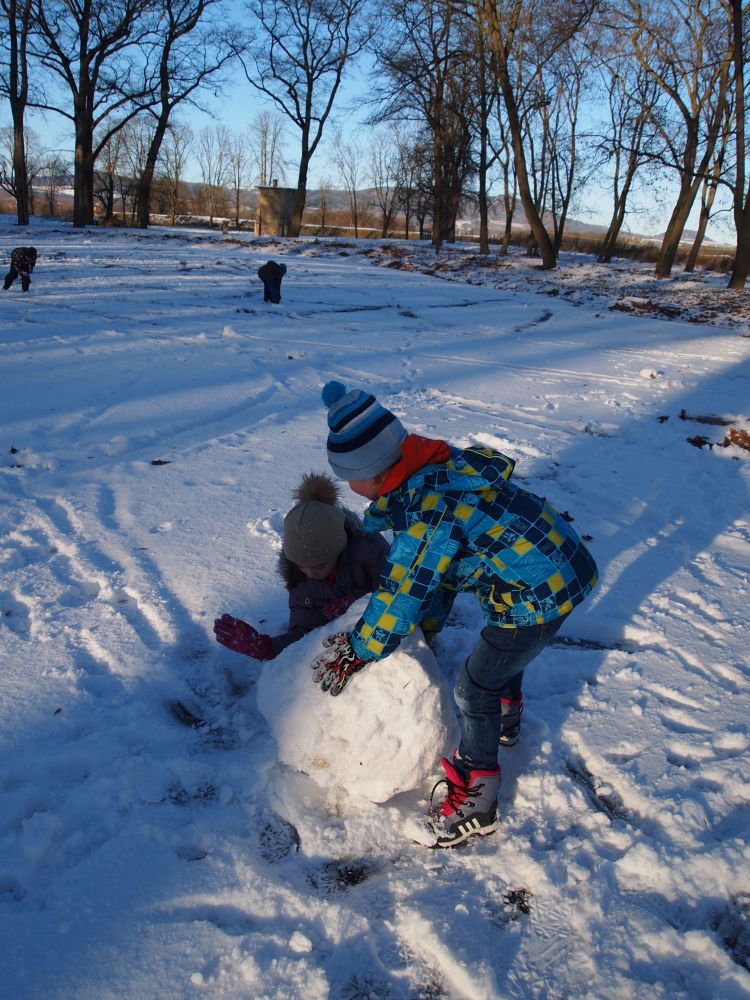 2016-01-08 ŠD - relaxace se psem, stavění ze sněhu