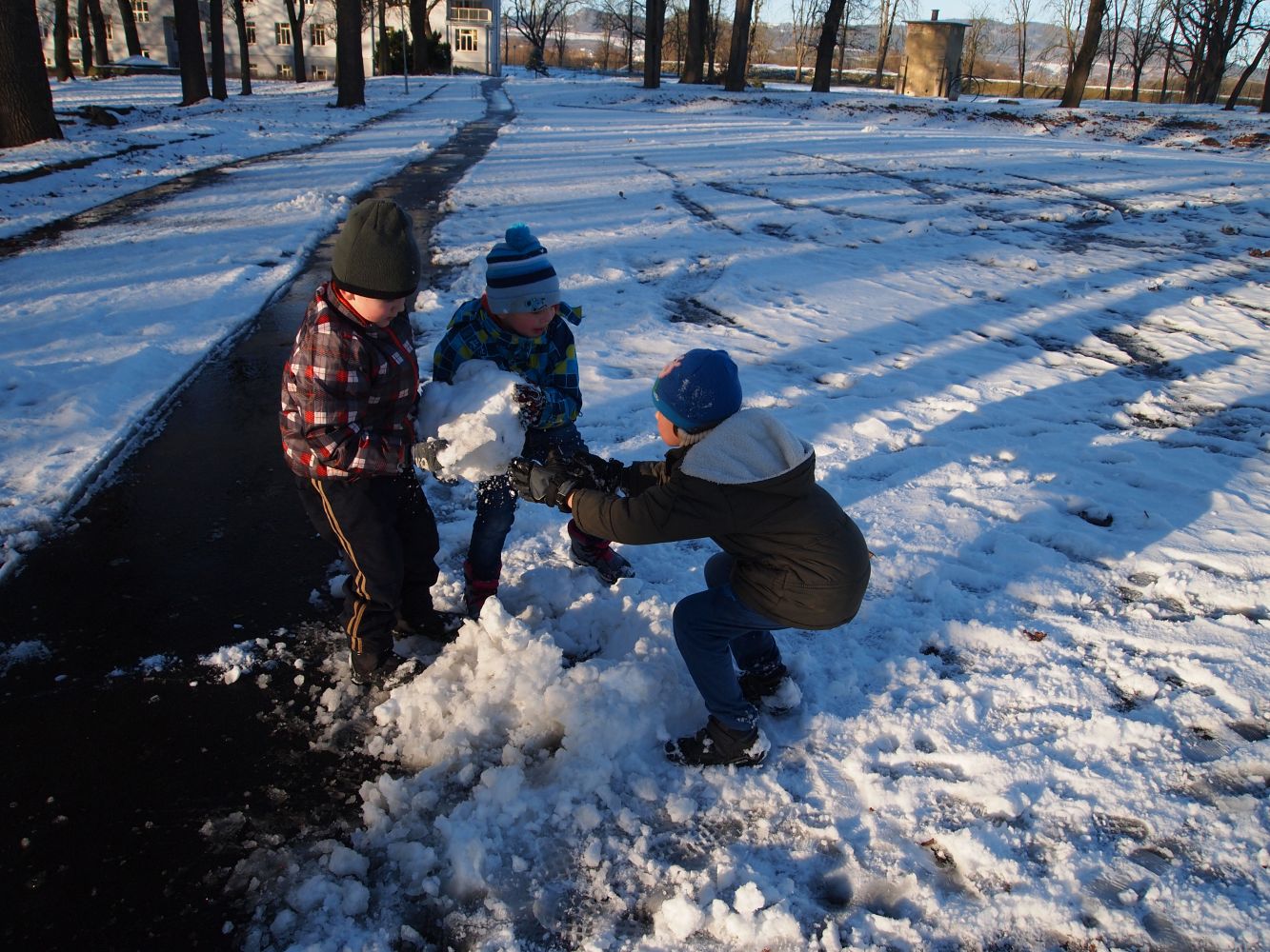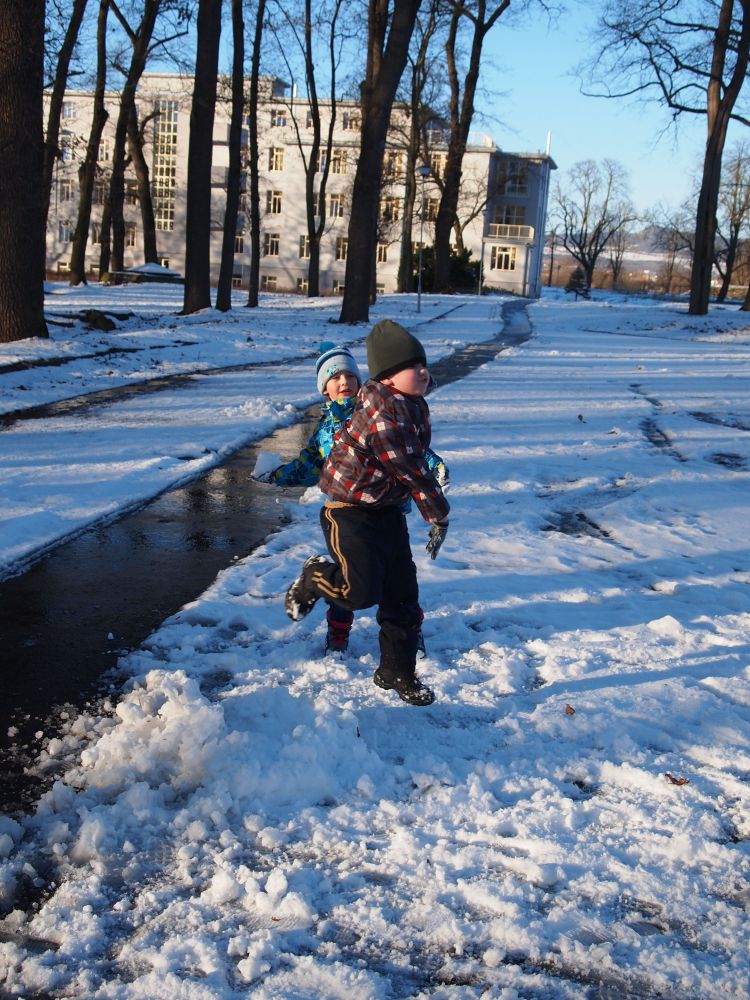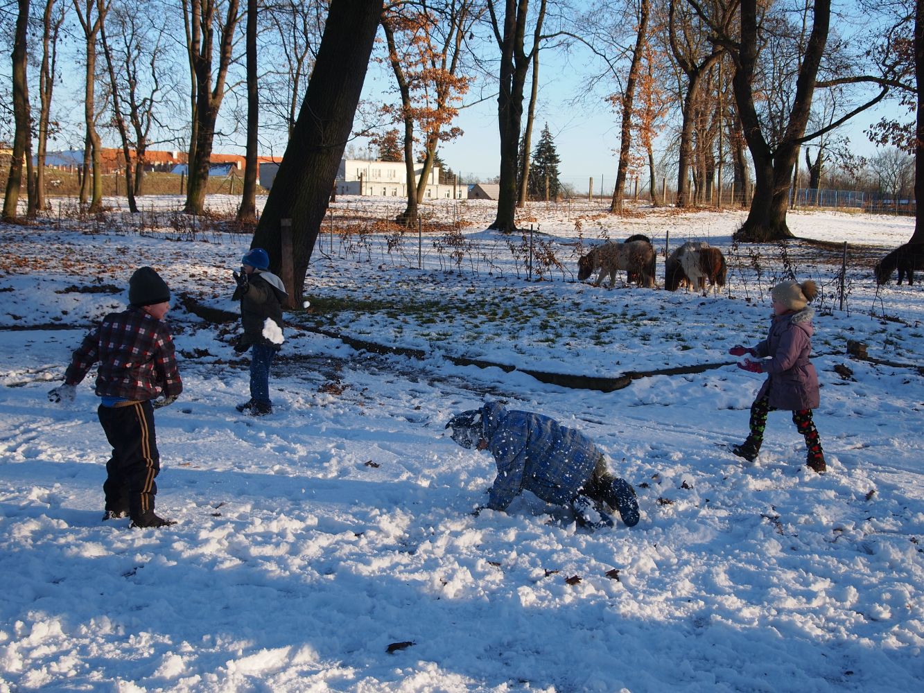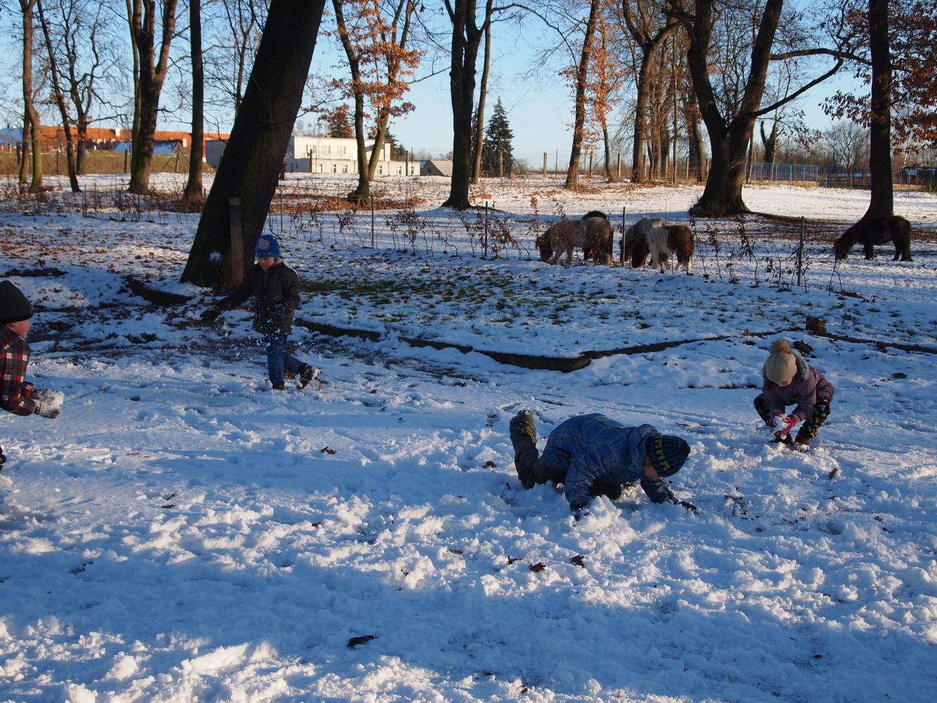 2016-01-08 ŠD - relaxace se psem, stavění ze sněhu