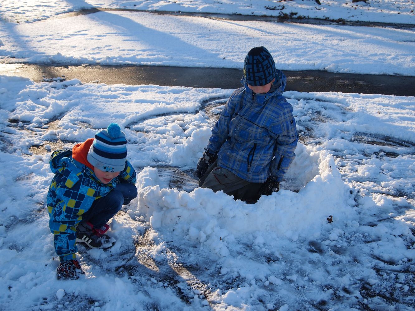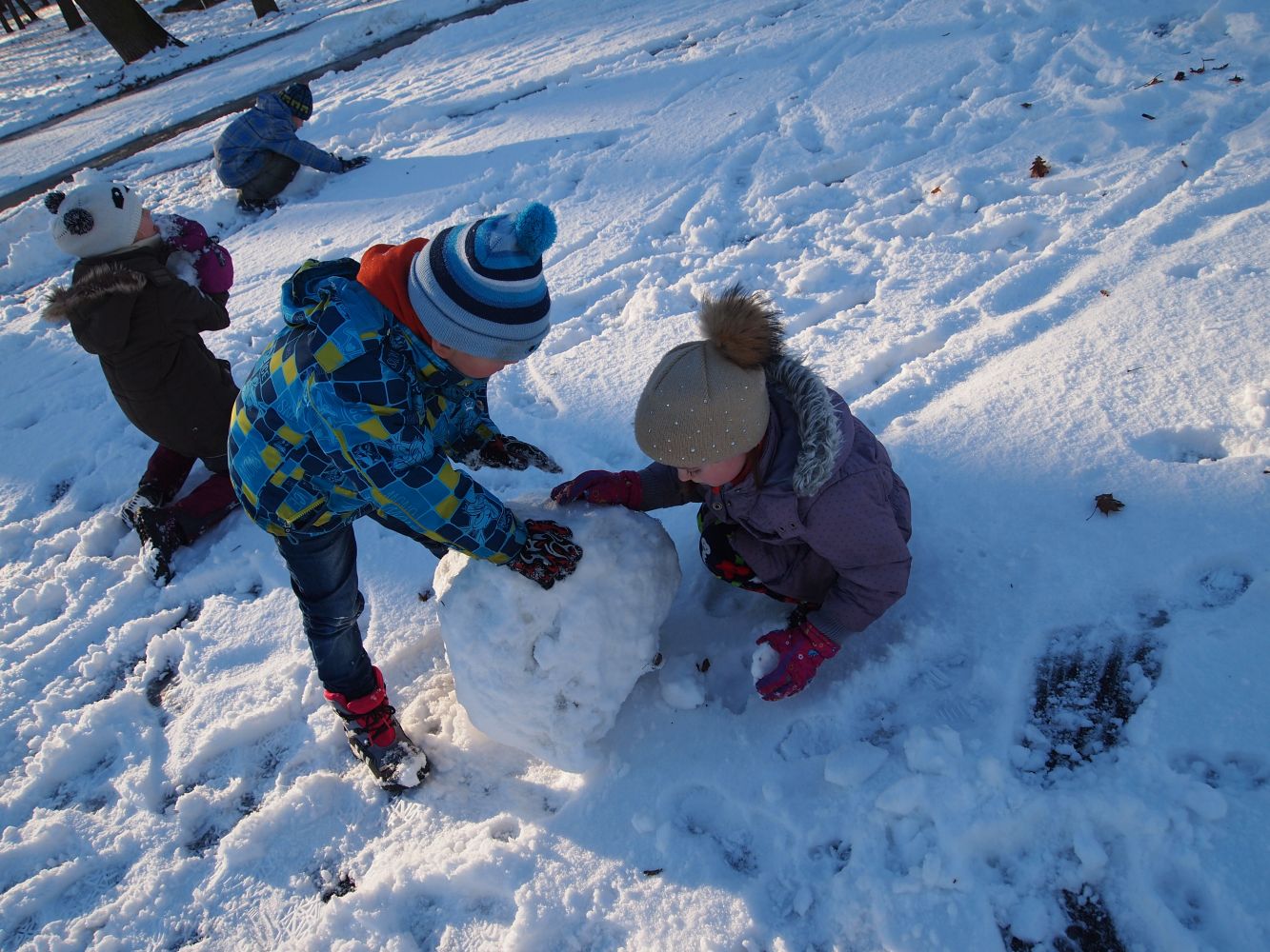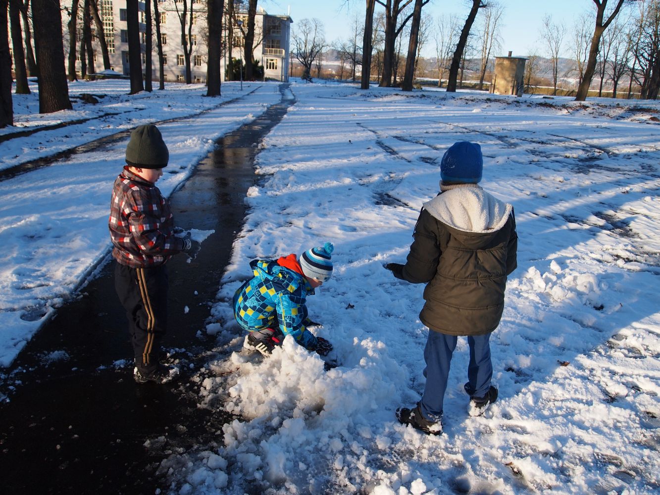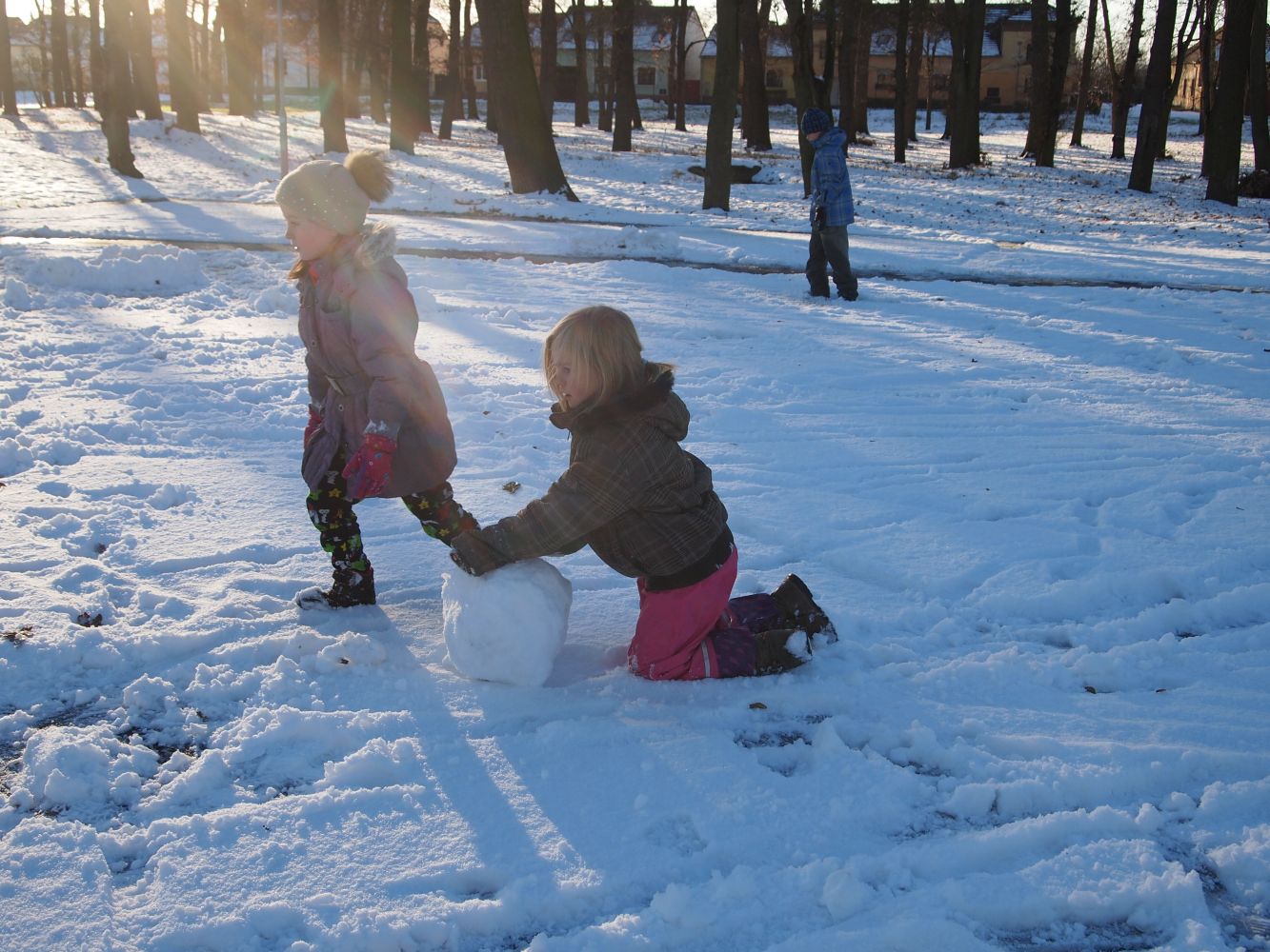2016-01-08 ŠD - relaxace se psem, stavění ze sněhu