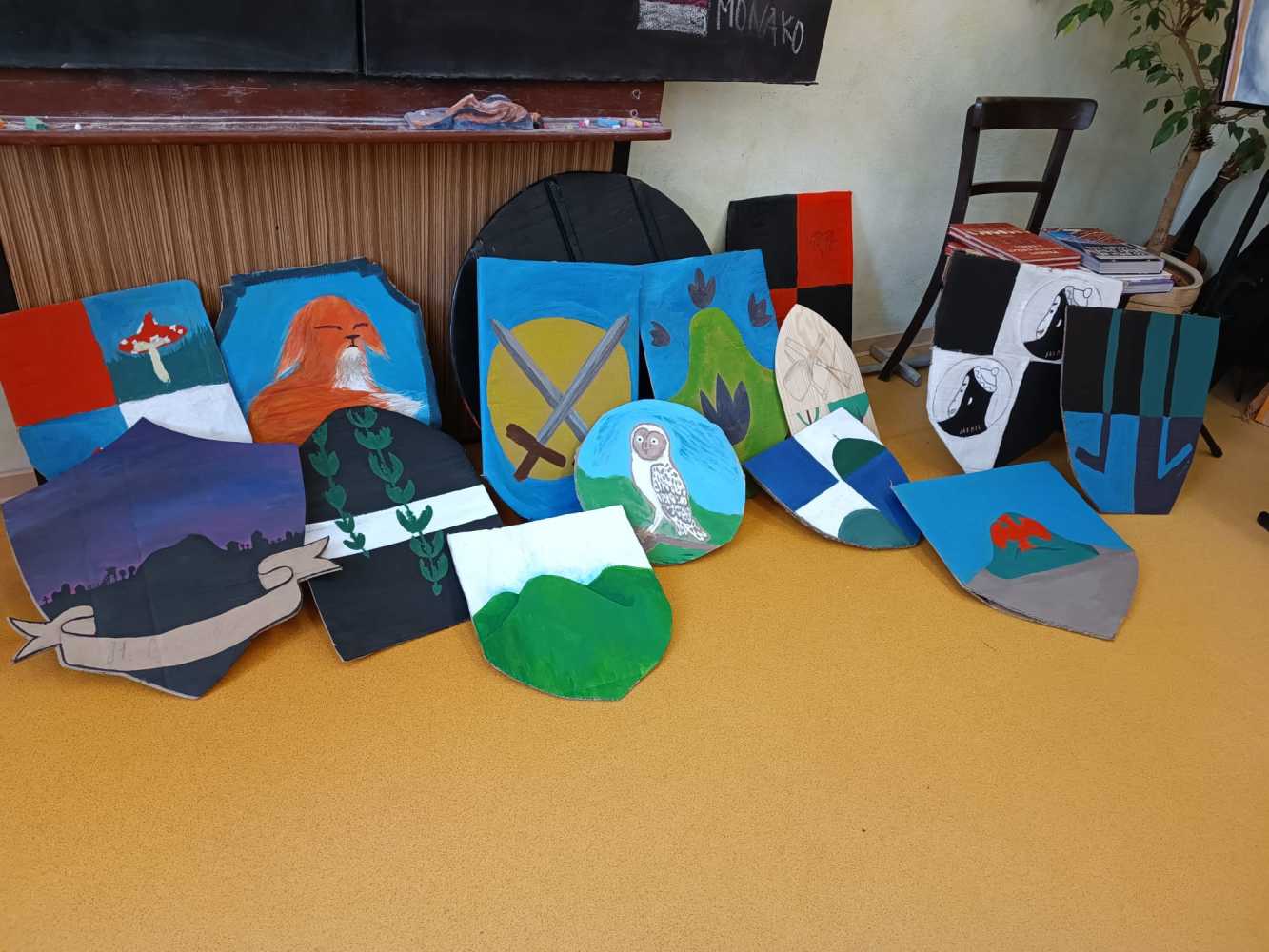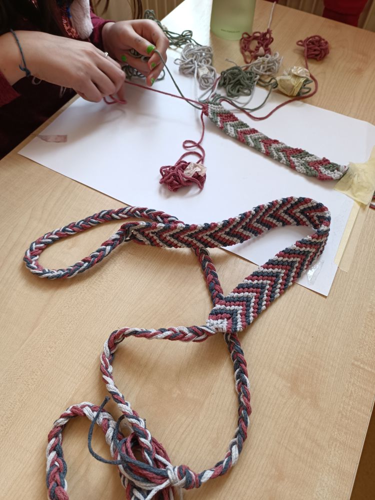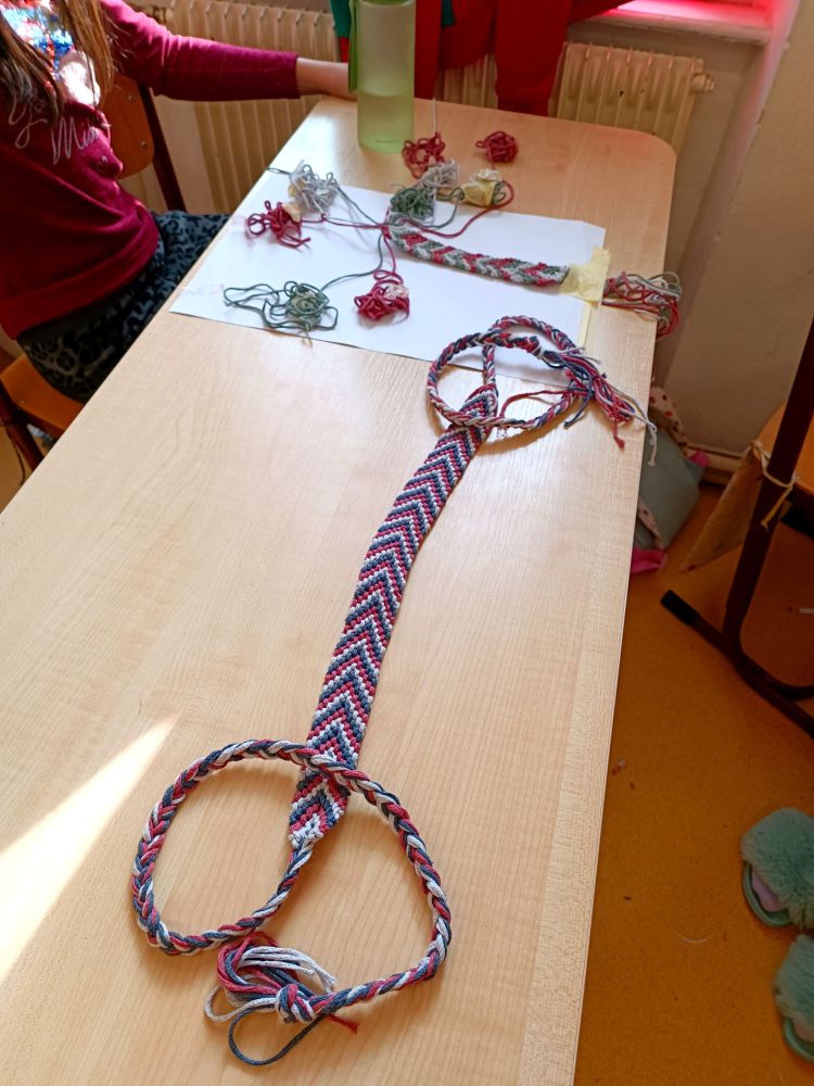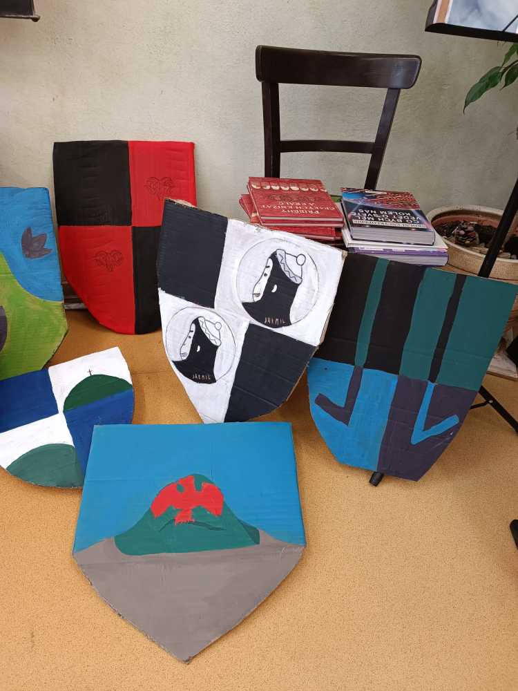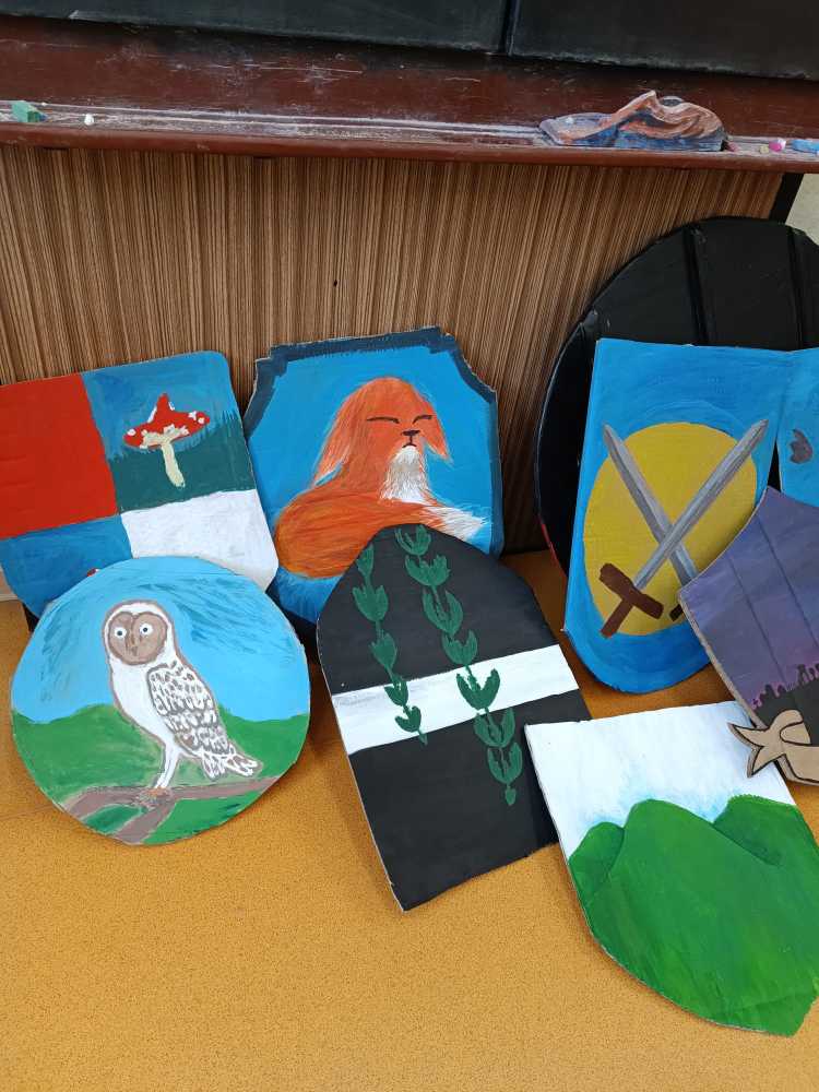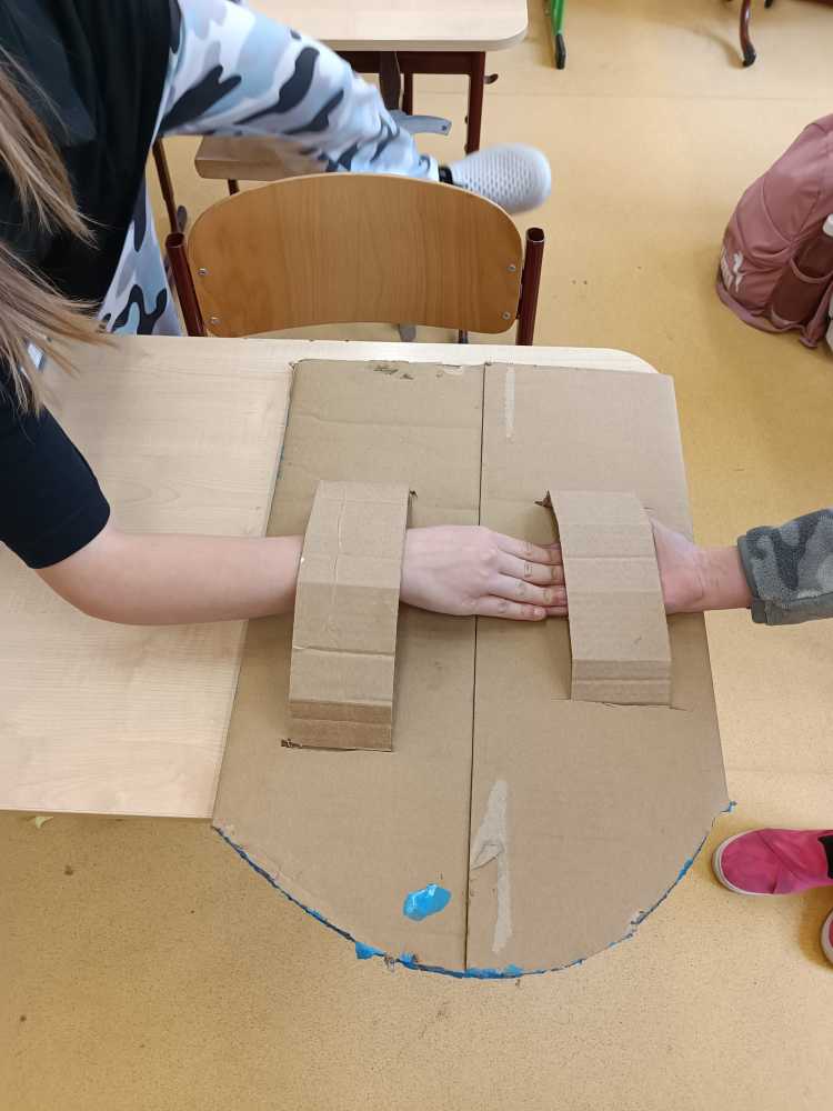 Hlavní album » 2022-2023 » 6.třída - tř.učitelka Mgr. A.M.Schnellyová » 2023-04-20 Výroba štítů,taštiček a pásků