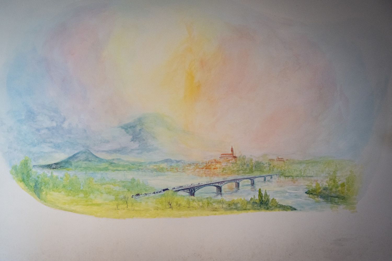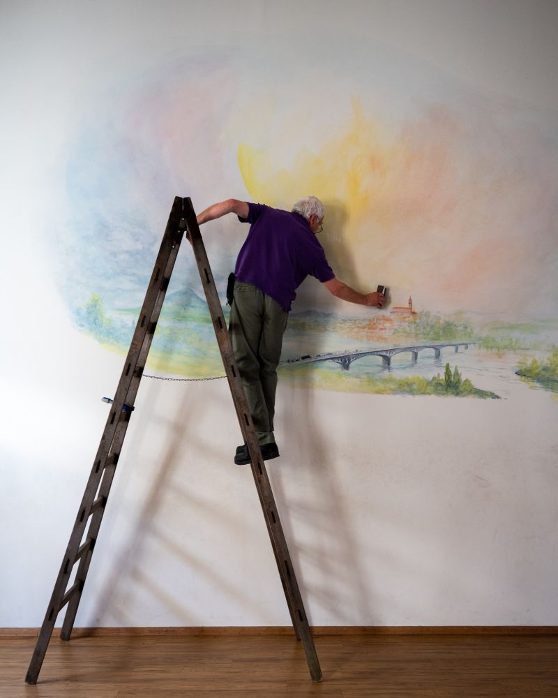 David Newbatt, mezinárodně uznávaný umělec, přenesl na stěnu našeho hudebního sálu okouzlující pohled na Litoměřice. Tento nádherný nástěnný obraz zachycuje krásu města v jemných barvách a ladných liniích, které propojují přírodu, architekturu a lidskou tvořivost. Hudba a obraz se zde spojují v harmonii, která oslovuje všechny smysly a zve nás k zastavení a zamyšlení nad tím, jaký příběh vypráví naše okolí – a jak se na něj můžeme dívat s novým pohledem.