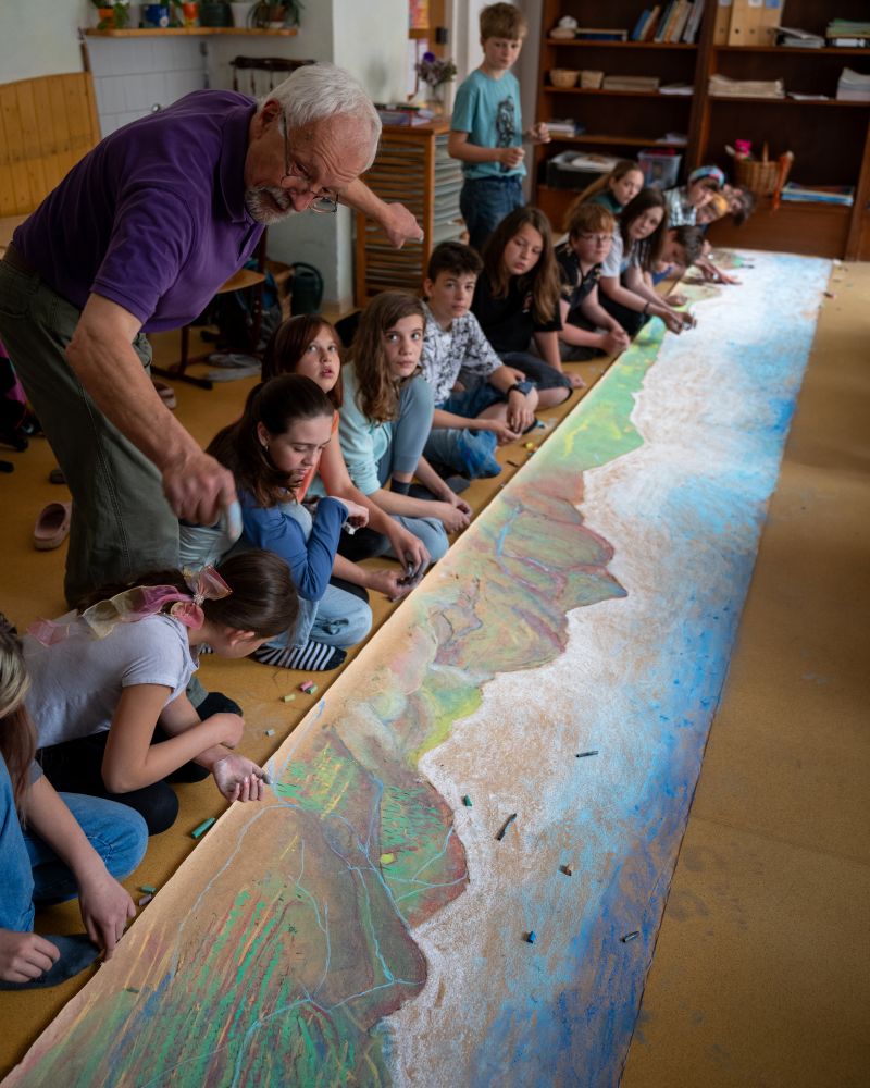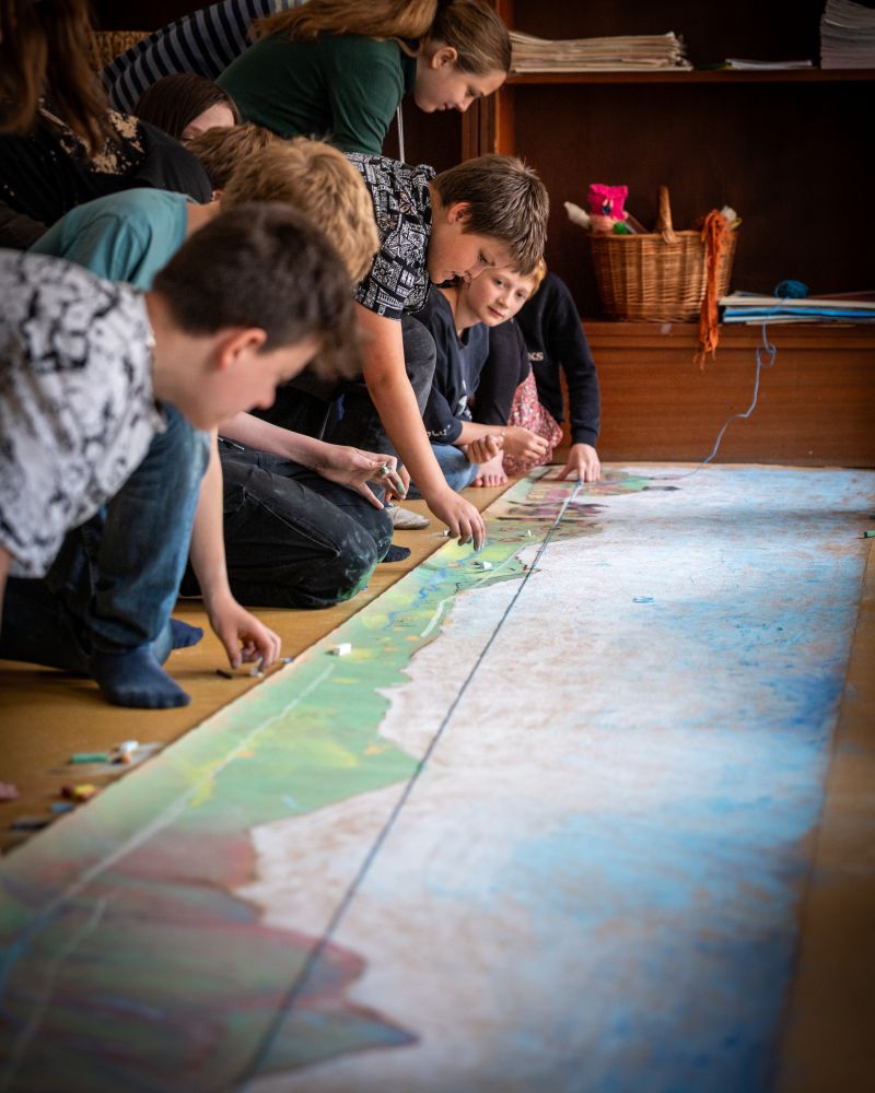 Žáci 6. a 9. třídy měli jedinečnou příležitost zažít inspirativní výuku malby přímo s Davidem Newbattem, který pro naši školu tento vizuální skvost vytvořil. Pro děti to nebyla jen lekce techniky a umění, ale především výuka založená na představivosti, tvořivosti a v 6. třídě také na vzájemné spolupráci. David Newbatt nás inspiruje, abychom hledali krásu v každodennosti a objevovali umění v pohledu na svět kolem nás.